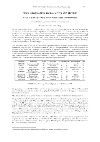 Nine chess programs competed in July 2015 in the ICGA's World Computer Chess Championship at the Computer Science department of Leiden University. This is the official report of the event.