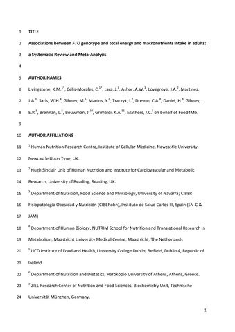 Associations between FTO genotype and total energy and macronutrients intake: a systematic review and meta-analysis.