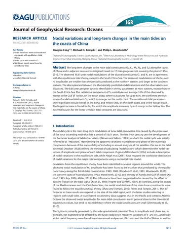 Feng, X. orcid id iconORCID: https://orcid.org/0000-0003-4143-107X, Tsimplis, M. N. and Woodworth, P. L. (2015) Nodal variations and long-term changes in the main tides on the coasts of China. Journal of Geophysical Research: Oceans, 120 (2). pp. 1215-1232. ISSN 2169-9291 doi: 10.1002/2014JC010312