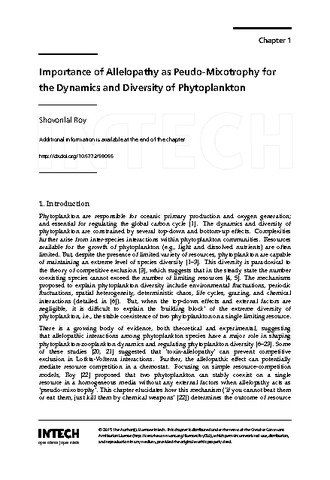 Importance of allelopathy as peudo-mixotrophy for the dynamics and diversity of phytoplankton.