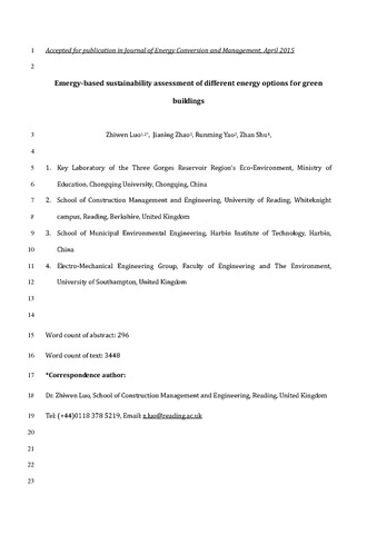 Emergy-based sustainability assessment of different energy options for green buildings.