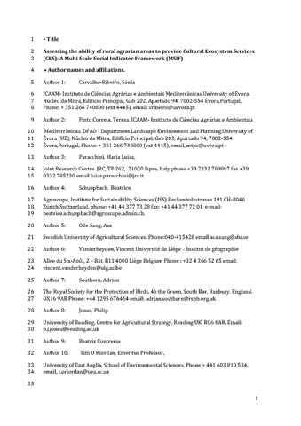 Assessing the ability of rural agrarian areas to provide Cultural Ecosystem Services (CES): a Multi Scale Social Indicator Framework (MSIF)