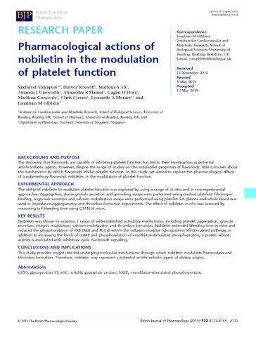 Pharmacological actions of nobiletin in the modulation of platelet function.