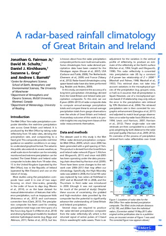 The Met Office 1km radar-derived precipitation-rate composite over 8 years (2006–2013) is examined to evaluate whether it provides an accurate representation of annual-average precipitation over Great Britain and Ireland over long periods of time. The annual-average precipitation from the radar composite is comparable with gauge measurements, with an average error of +23mmyr−1 over Great Britain and Ireland, +29mmyr−1 (3%) over the United Kingdom and –781mmyr−1 (46%) over the Republic of Ireland. The radar-derived precipitation composite is useful over the United Kingdom including Northern Ireland, but not accurate over the Republic of Ireland, particularly in the south.