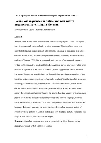 Whereas there is substantial scholarship on formulaic language in L1 and L2 English, there is less research on formulaicity in other languages. The aim of this paper is to contribute to learner corpus research into formulaic language in native and non-native German. To this effect, a corpus of argumentative essays written by advanced British students of German (WHiG) was compared with a corpus of argumentative essays written by German native speakers (Falko-L1). A corpus-driven analysis reveals a larger number of 3-grams in WHiG than in Falko-L1, which suggests that British advanced learners of German are more likely to use formulaic language in argumentative writing than their native-speaker counterparts. Secondly, by classifying the formulaic sequences according to their functions, this study finds that native speakers of German prefer discourse-structuring devices to stance expressions, whilst British advanced learners display the opposite preferences. Thirdly, the results show that learners of German make greater use of macro-discourse-structuring devices and cautious language, whereas native speakers favour micro-discourse structuring devices and tend to use more direct language. This study increases our understanding of formulaic language typical of British advanced learners of German and reveals how diverging cultural paradigms can shape written native speaker and learner output.