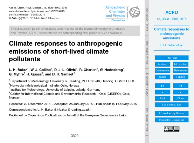 Climate responses to anthropogenic emissions of short-lived climate pollutants.