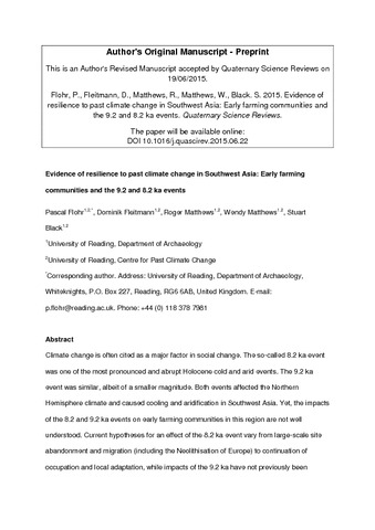 Evidence of resilience to past climate change in Southwest Asia: early farming communities and the 9.2 and 8.2 ka events.