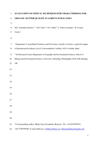 Evaluation of optical techniques for characterising soil organic matter quality in agricultural soils.