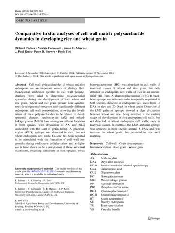Comparative in situ analyses of cell wall matrix polysaccharide dynamics in developing rice and wheat grain.