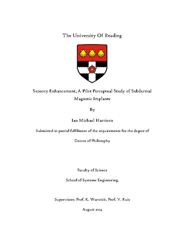 Harrison, I. (2015) Sensory enhancement, a pilot perceptual study of subdermal magnetic implants. PhD thesis, University of Reading.