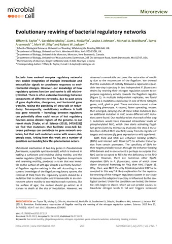 Bacteria have evolved complex regulatory networks that enable integration of multiple intracellular and extracellular signals to coordinate responses to environmental changes. However, our knowledge of how regulatory systems function and evolve is still relatively limited. There is often extensive homology between components of different networks, due to past cycles of gene duplication, divergence, and horizontal gene transfer, raising the possibility of cross-talk or redundancy. Consequently, evolutionary resilience is built into gene networks – homology between regulators can potentially allow rapid rescue of lost regulatory function across distant regions of the genome. In our recent study [Taylor, et al. Science (2015), 347(6225)] we find that mutations that facilitate cross-talk between pathways can contribute to gene network evolution, but that such mutations come with severe pleiotropic costs. Arising from this work are a number of questions surrounding how this phenomenon occurs.