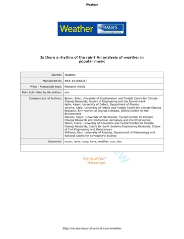 Is there a Rhythm Of The Rain? An analysis of weather in popular music.