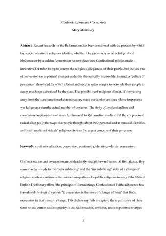 Morrissey, M. orcid id iconORCID: https://orcid.org/0000-0002-9287-3460 (2015) Confessionalism and conversion in the Reformation. In: Simpson, J. (ed.) Oxford Handbooks Online. Oxford University Press. doi: 10.1093/oxfordhb/9780199935338.013.73