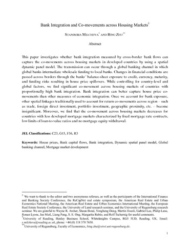 Milcheva, S. and Zhu, B. (2016) Bank integration and co-movements across housing markets. Journal of Banking & Finance, 72 (Supplement). S148-S171. ISSN 0378-4266 doi: 10.1016/j.jbankfin.2015.07.002