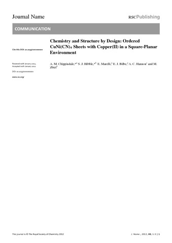 Chemistry and structure by design: ordered CuNi(CN)4 sheets with copper(II) in a square-planar environment.