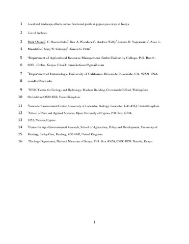 Local and landscape effects on bee functional guilds in pigeon pea crops in Kenya.