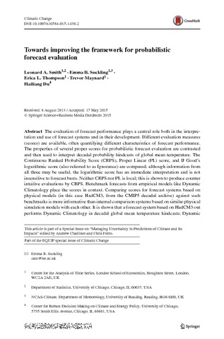 Smith, L. A., Suckling, E. B., Thompson, E. L., Maynard, T. and Du, H. (2015) Towards improving the framework for probabilistic forecast evaluation. Climatic Change, 132 (1). pp. 31-45. ISSN 1573-1480 doi: 10.1007/s10584-015-1430-2
