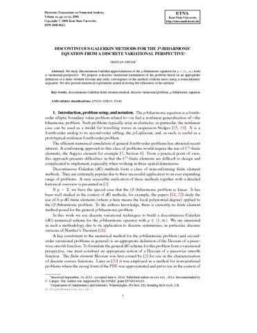 Pryer, T. (2014) Discontinuous Galerkin methods for the p-biharmonic equation from a discrete variational perspective. Electronic Transactions on Numerical Analysis, 41. pp. 328-349. ISSN 1068-9613