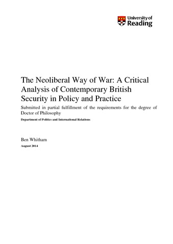 Whitham, B. (2015) The neoliberal way of war: a critical analysis of contemporary British security in policy and practice. PhD thesis, University of Reading.
