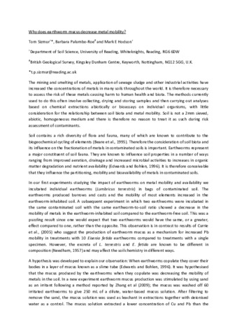 | Uncontrolled Keywords | Earthworms; Metals; Mobility; Availability |