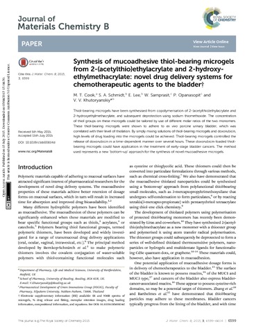Cook, M. T., Schmidt, S. A., Lee, E., Samprasit, W., Opanasopit, P. and Khutoryanskiy, V. V.
