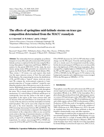 The effects of springtime mid-latitude storms on trace gas composition determined from the MACC reanalysis.