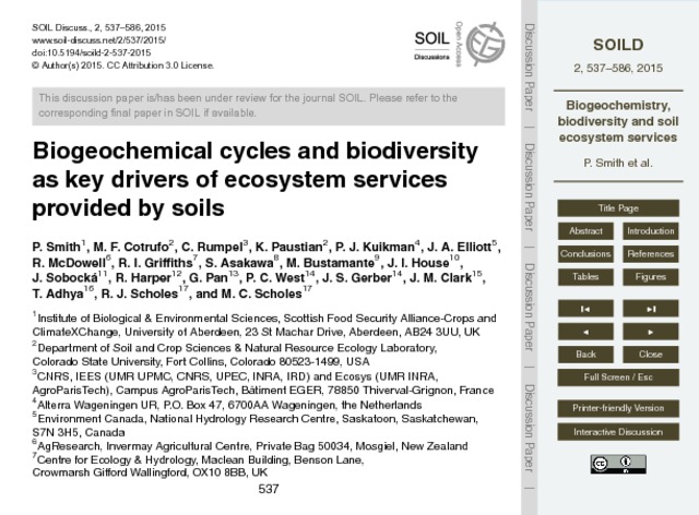 Smith, P., Cotrufo, M. F., Rumpel, C., Paustian, K., Kuikman, P. J., Elliott, J. A., McDowell, R., Griffiths, R. I., Asakawa, S., Bustamante, M., House, J. I., Sobocká, J., Harper, R., Pan, G., West, P. C., Gerber, J. S., Clark, J. M.