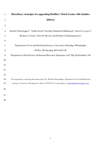 Biorefinery strategies for upgrading Distillers’ Dried Grains with Solubles (DDGS).