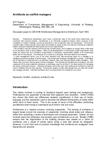 | Uncontrolled Keywords | conflict, contract, architect, role |