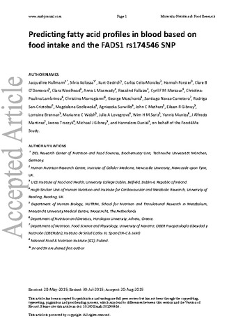 [3] Bokor, S., Dumont, J., Spinneker, A., Gonzalez-Gross, M., Nova, E., Widhalm, K., Moschonis, G., Stehle, P., Amouyel, P., De Henauw, S., Molnàr, D., Moreno, L. A., Meirhaeghe, A., Dallongeville, J.; HELENA Study Group, Single nucleotide polymorphisms in the FADS gene cluster are associated with delta-5 and delta-6 desaturase activities estimated by serum fatty acid ratios. J Lipid Res. Aug. 2010, 51(8):2325-33.
