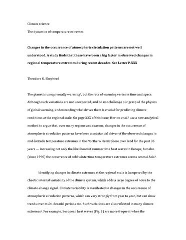 Changes in the occurrence of atmospheric circulation patterns are not well understood. A study finds that these have been a big factor in observed changes in regional temperature extremes during recent decades.