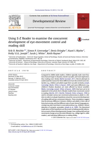 Reichle, E. D., Liversedge, S. P., Drieghe, D., Blythe, H. I., Joseph, H. S. S. L. ORCID: https://orcid.org/0000-0003-4325-4628, White, S. J. and Rayner, K.