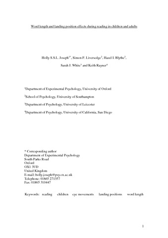 ORCID: https://orcid.org/0000-0003-4325-4628, Liversedge, S. P., Blythe, H. I., White, S. J. and Rayner, K.