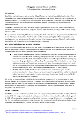 Glaister, P., (2015) Briefing paper for universities on Core Maths. Core Maths Support Programme
