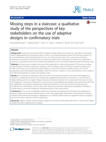 Missing steps in a staircase: a qualitative study of the perspectives of key stakeholders on the use of adaptive designs in confirmatory trials.