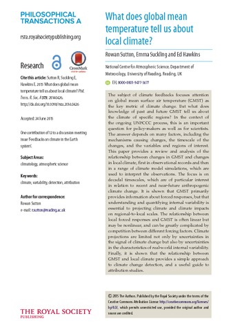 What does global mean temperature tell us about local climate?