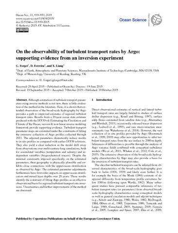 Forget, G., Ferreira, D. orcid id iconORCID: https://orcid.org/0000-0003-3243-9774 and Liang, X. (2015) On the observability of turbulent transport rates by Argo: supporting evidence from an inversion experiment. Ocean Science, 11 (5). pp. 839-853. ISSN 1812-0784 doi: 10.5194/os-11-839-2015