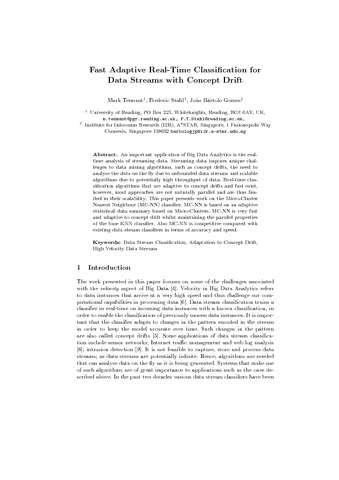 Uncontrolled Keywords | Data stream classification; Adaptation to concept drift; High velocity data streams |