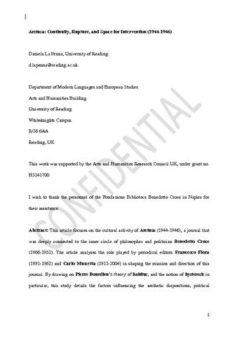 La Penna, D. orcid id iconORCID: https://orcid.org/0000-0002-4197-0041 (2016) Aretusa: continuity, rupture, and space for intervention, 1944-1946. Journal of Modern Italian Studies, 21 (1). pp. 19-34. ISSN 1354-571X doi: 10.1080/1354571X.2016.1112061