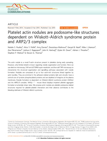 Poulter, N. S., Pollitt, A. Y. ORCID: https://orcid.org/0000-0001-8706-5154, Davies, A., Malinova, D., Nash, G. B., Hannon, M. J., Pikramenou, Z., Rappoport, J. Z., Hartwig, J. H., Owen, D. M., Thrasher, A. J., Watson, S. P. and Thomas, S. G.