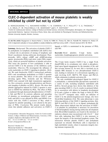 Borgognone, A., Navarro-Núñez, L., Correia, J. N., Pollitt, A. Y. ORCID: https://orcid.org/0000-0001-8706-5154, Thomas, S. G., Eble, J. A., Pulcinelli, F. M., Madhani, M. and Watson, S. P.