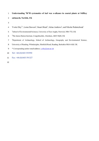 Understanding 2H/1H systematics of leaf wax n-alkanes in coastal plants at Stiffkey saltmarsh, Norfolk, UK.