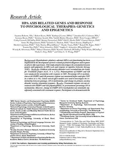 HPA axis related genes and response to psychological therapies: genetics and epigenetics.