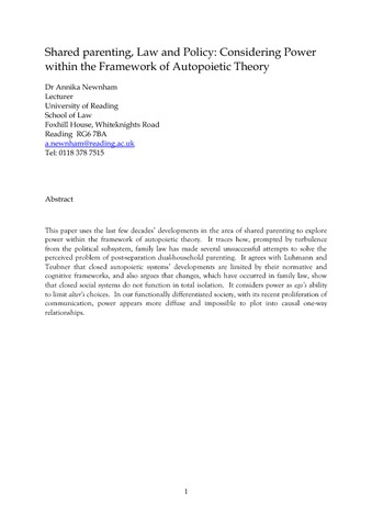 Newnham, A. orcid id iconORCID: https://orcid.org/0000-0001-8541-0495 (2015) Shared parenting, law and policy: considering power within the framework of autopoietic theory. International Journal of Law in Context, 11 (4). pp. 426-443. ISSN 1744-5531 doi: 10.1017/S1744552315000282