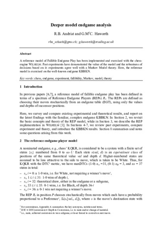 Andrist, R. B. and Haworth, G. M. orcid id iconORCID: https://orcid.org/0000-0001-9896-1448 (2005) Deeper model endgame analysis. Theoretical Computer Science, 349 (2). pp. 158-167. ISSN 0304-3975 doi: 10.1016/j.tcs.2005.09.044