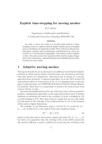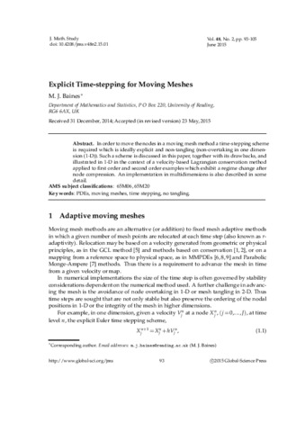 Baines, M. J. (2015) Explicit time-stepping for moving meshes. Journal of Mathematical Study, 48 (2). pp. 93-105. ISSN 1006-6837 doi: 10.4208/jms.v48n2.15.01