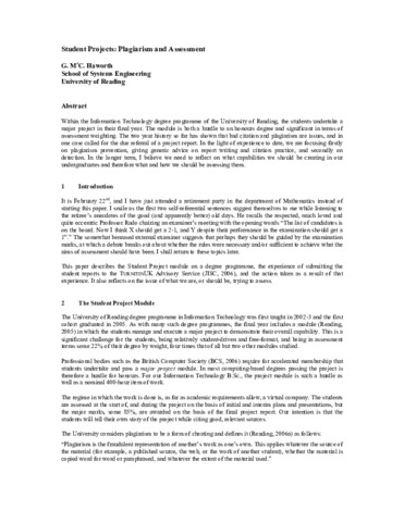 Student projects: plagiarism and assessment.