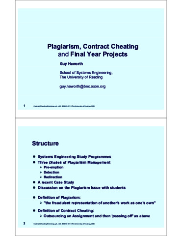 In: UK HEA Workshop on Contract Cheating, 2008-03-07, Birmingham City University.