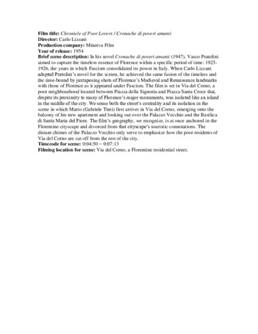 Leavitt, C. (2014) Chronicle of poor lovers / Cronache di poveri amanti (1947). In: Zambenedetti, A. (ed.) World film locations: Florence. Intellect Books, Bristol and Chicago, pp. 26-27. ISBN 9781783203444