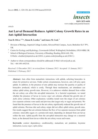 Ant larval demand reduces aphid colony growth rates in an ant-aphid interaction.